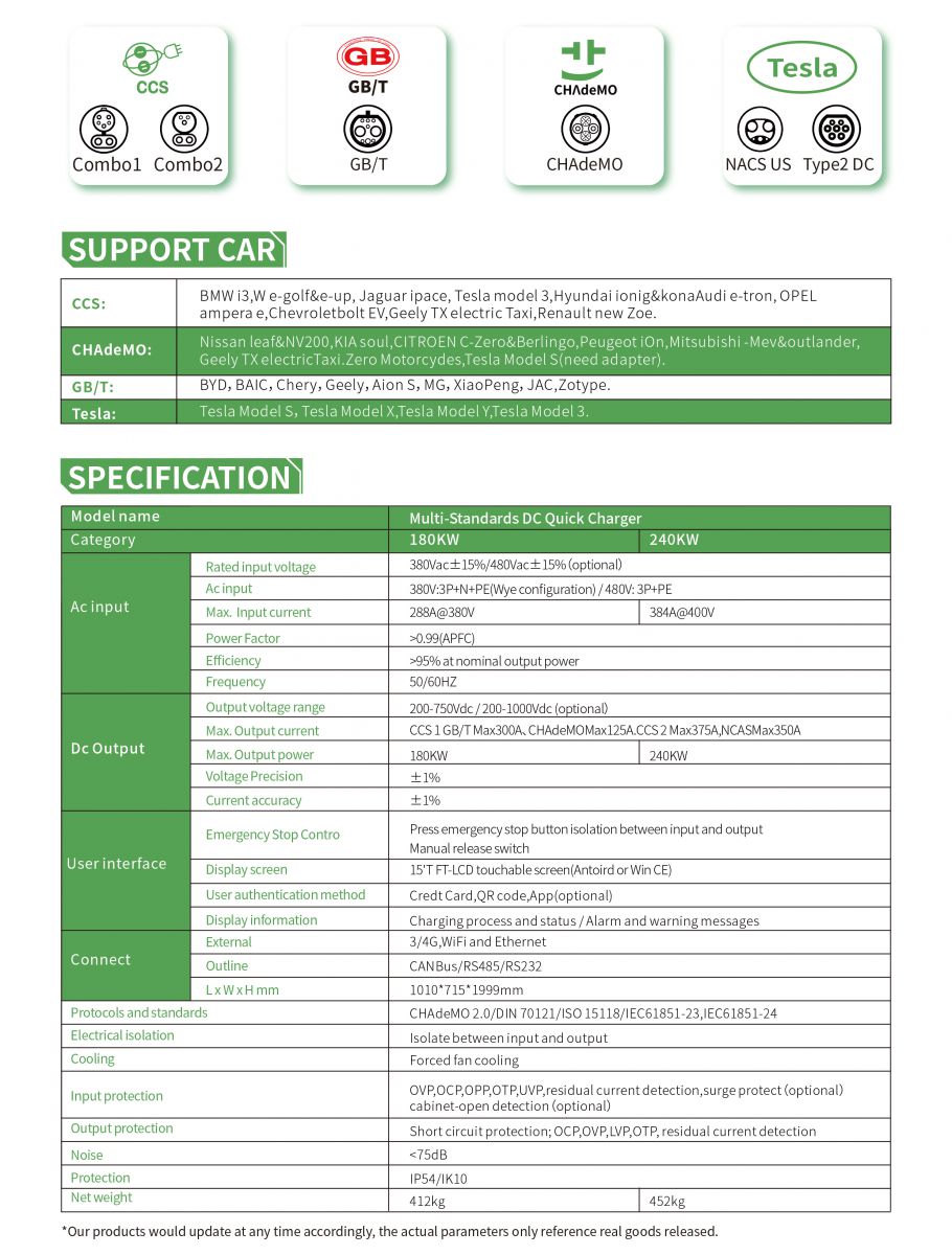 This charger is suitable for equip with dual CCS2 plug or GB/T plug, As well for CCS1/NACS for dual. It is the Super Ultra-Rapid charging for 800V system vehicle but no need to use Liquid cooled plug cable.