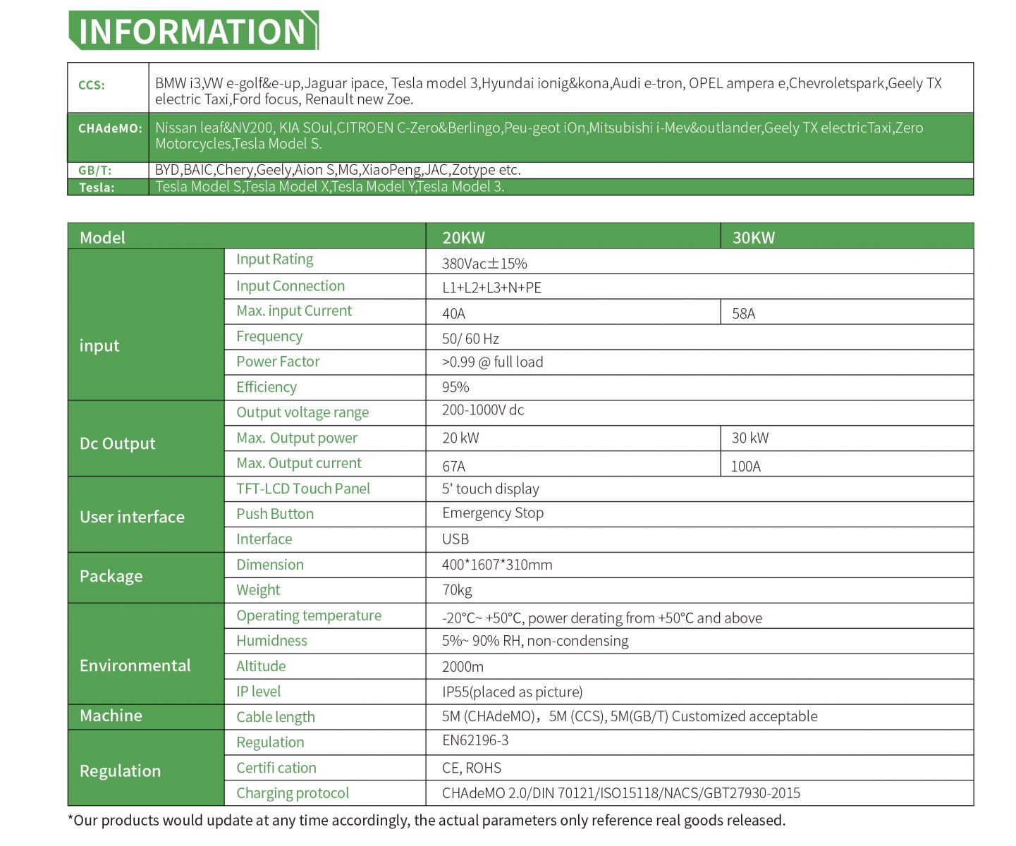 Electway Dual EV DC Charging Station is specially designed for commercial charging purposes, and has integrated our latest POS terminal payment technology to maximize the user charging experience in public, workplace, commercial parking, gas stations etc.