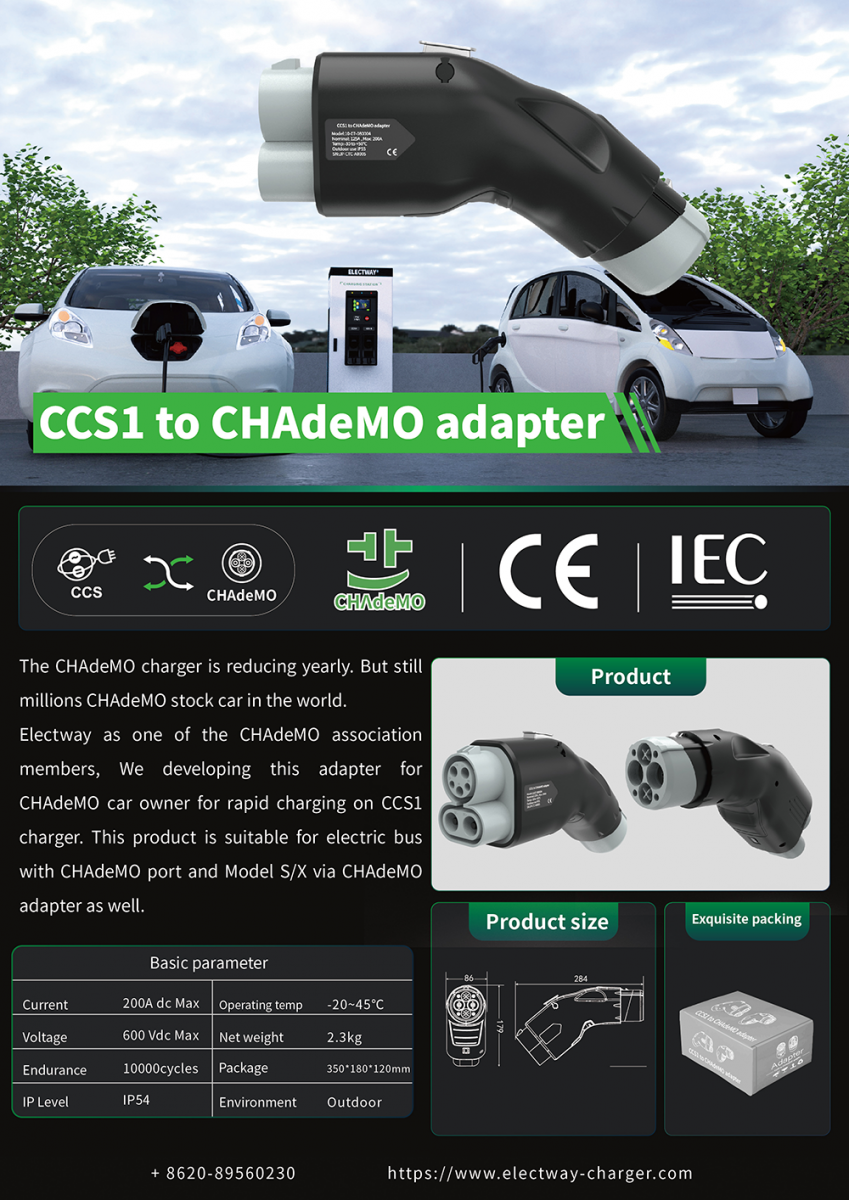 Electway as one of the CHAdeMO association members, We developing this adapter for CHAdeMO car owner for rapid charging on CCS1 charger. This product is suitable for electric bus with CHAdeMO port and Model S/X via CHAdeMO adapter as well.It is popular for use in North America & South Korea etc area.